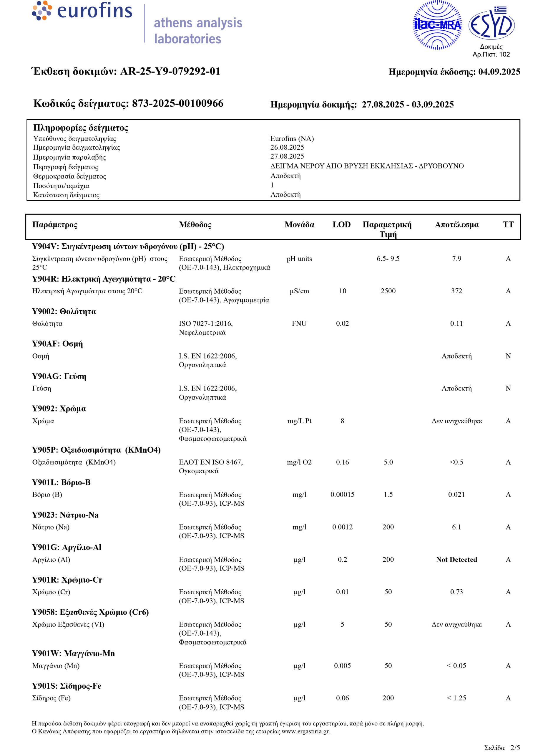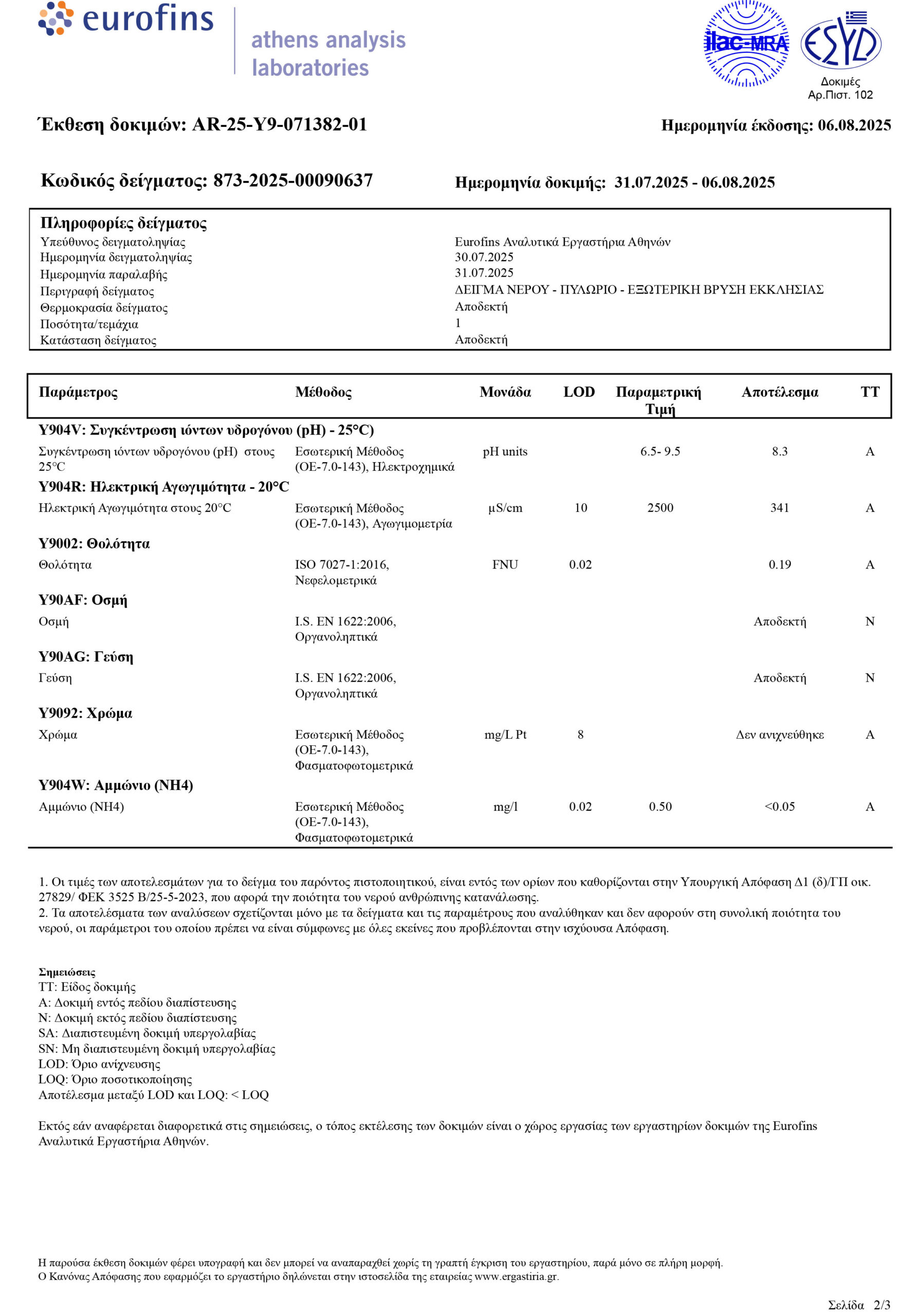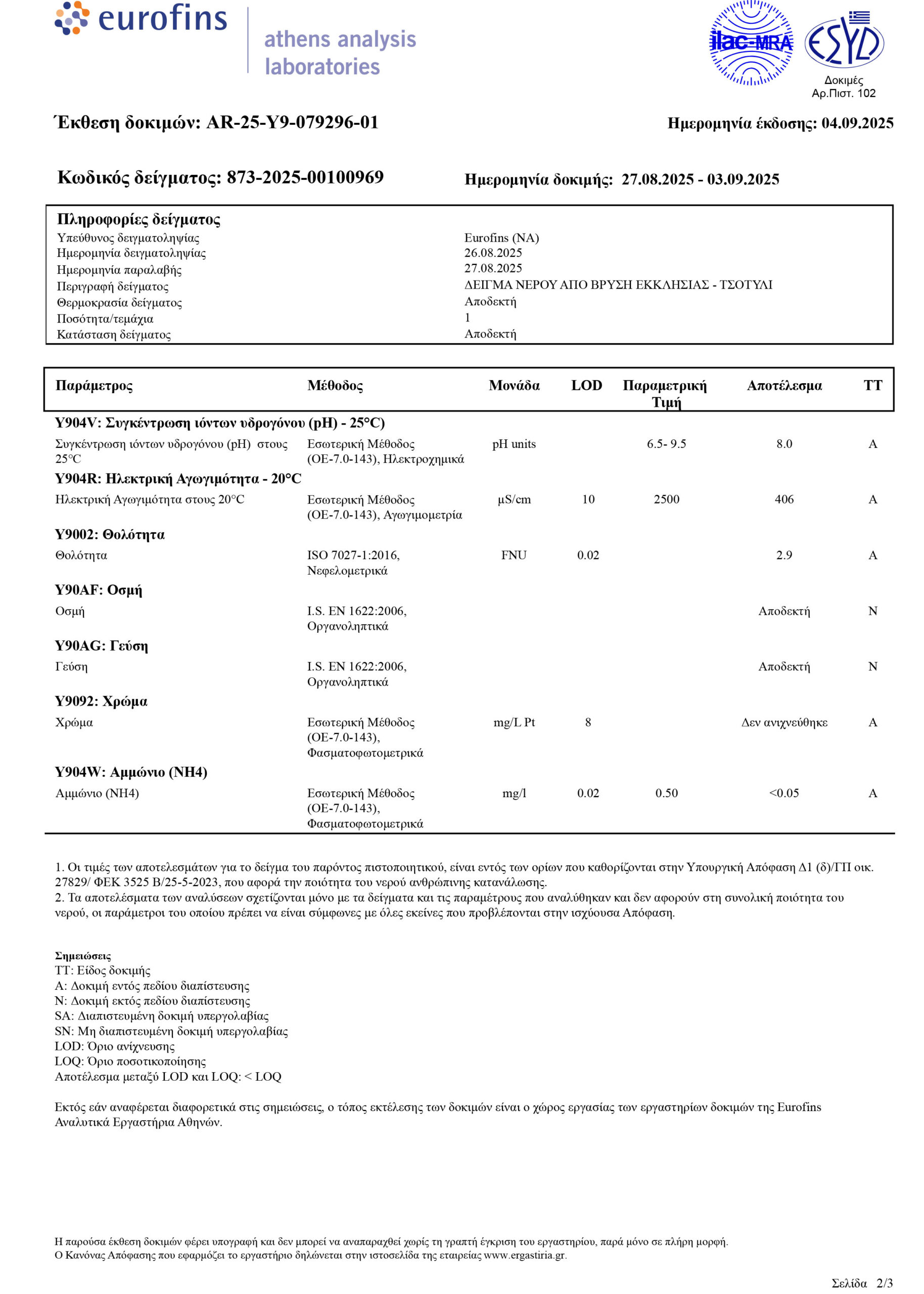 ΣΤΑ ΠΛΑΙΣΙΑ ΤΩΝ ΤΑΚΤΙΚΩΝ ΔΕΙΓΜΑΤΟΛΗΠΤΙΚΩΝ ΕΛΕΓΧΩΝ ΠΟΥ ΠΡΑΓΜΑΤΟΠΟΙΕΙ Η Δ.Ε.Υ.Α. ΒΟΪΟΥ, ΓΙΑ ΤΗΝ ΔΙΑΣΦΑΛΙΣΗ ΤΗΣ ΠΟΙΟΤΗΤΑΣ ΤΟΥ ΠΑΡΕΧΟΜΕΝΟΥ ΝΕΡΟΥ ΚΑΙ ΤΗΝ ΑΜΕΣΗ ΕΝΗΜΕΡΩΣΗ ΤΩΝ ΚΑΤΑΝΑΛΩΤΩΝ, ΣΑΣ ΚΟΙΝΟΠΟΙΟΎΜΕ ΤΑ ΑΠΟΤΕΛΕΣΜΑΤΑ ΕΛΕΓΚΤΙΚΗΣ ΠΑΡΑΚΟΛΟΥΘΗΣΗΣ (Ομάδα ΄Β) ΠΟΣΙΜΟΥ ΝΕΡΟΥ ΤΟΥ ΔΙΚΤΥΟΥ ΥΔΡΕΥΣΗΣ ΑΡΜΟΔΙΟΤΗΤΑΣ Δ.Ε.Υ.Α. ΒΟΪΟΥ ΠΟΥ ΠΑΡΘΗΚΑΝ ΑΠΟ ΤΗΝ ΚΟΙΝΟΤΗΤΑ ΣΙΑΤΙΣΤΑ, ΓΑΛΑΤΙΝΗ, ΤΣΟΤΥΛΙ, ΠΥΛΩΡΙ, ΜΕΛΙΔΟΝΙ, ΔΡΥΟΒΟΥΝΟ, ΚΑΛΟΝΕΡΙ ΚΑΙ ΠΕΛΕΚΑΝΟ.